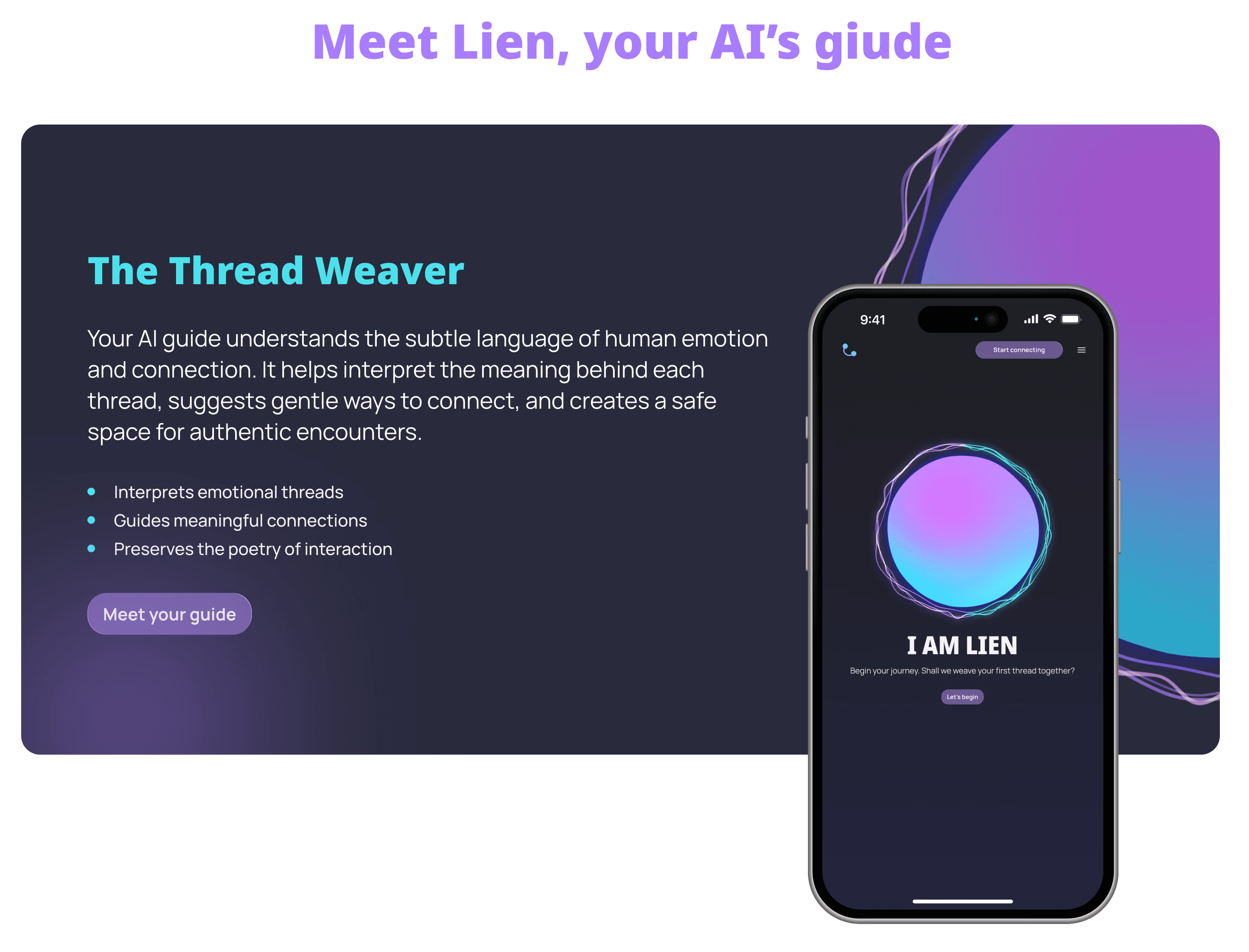 Integrates an AI Guide (The Thread Weaver) that accompanies the user and suggests connections.